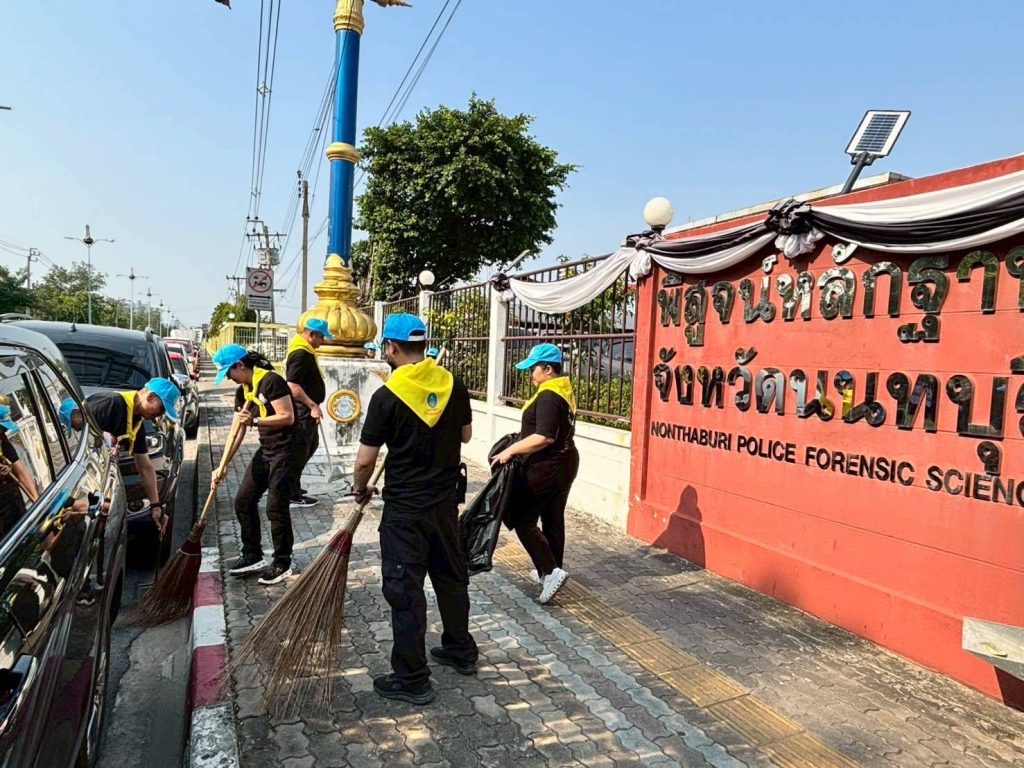 จิตอาสา บริเวณรอบที่ทำการ 24 February 2569 by admin / ข่าวกิจกรรม วันที่ 24 ก.พ.69 เวลา 15.00 น. พ.ต.อ.สมศักดิ์ รัศมีจันทร์ นวท.(สบ4) พฐ.จว.นนทบุรี นำข้าราชการตำรวจ พิสูจน์หลักฐานจังหวัดนนทบุรี ร่วมทำกิจกรรมจิตอาสาบำเพ็ญประโยชน์ “เราทำความดี เพื่อ ชาติ ศาสน์ กษัตริย์” โดยร่วมทำความสะอาด ณ ริมถนนสาธารณะด้านข้างอาคาร พฐ.จว.นนทบุรี ต.สวนใหญ่ อ.เมือง จ.นนทบุรี