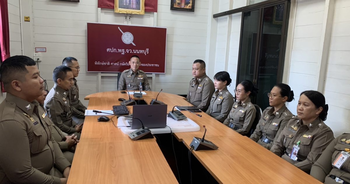 ประชุมบริหาร พฐ.จว.นนทบุรี 20 March 2569 by admin / ข่าวภารกิจผู้บังคับบัญชา วันที่ 20 มี.ค.69 เวลา 09.00 น. พ.ต.อ.สมศักดิ์ รัศมีจันทร์ นวท.(สบ 4) พฐ.จว.นนทบุรี พร้อม ขรก.ตร. พฐ.จว.นนทบุรี ประชุมบริหาร พฐ.จว.นนทบุรี มอบนโยบาย และสั่งการ กำชับการปฏิบัติงานของเจ้าหน้าที่