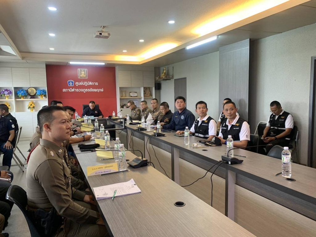 ประชุมติดตามขยายผลคดีลักรถ 12 February 2569 by admin / ข่าวภารกิจผู้บังคับบัญชา วันที่ 12 ก.พ. 2569 เวลา 13.00 น. พล.ต.ต.หญิงสุเจตนา โสตถิพันธุ์ ผบก.ศพฐ.1 มอบหมายให้ พ.ต.อ.อุดมศักดิ์ พาลี นวท.(สบ 5) ศพฐ.1 และ พ.ต.อ.สมศักดิ์ รัศมีจันทร์ นวท.(สบ 4) พฐ.จว.นนทบุรี พร้อมด้วยข้าราชการตำรวจในสังกัด กสก.ศพฐ.1 และ พฐ.จว.นนทบุรี ร่วมประชุมติดตาม ขยายผล และตรวจสอบรถยนต์ของกลางในคดี จากกรณีลักทรัพย์รถจักรยานยนต์ ท้องที่ สน.โชคชัย และขยายผลต่อเนื่อง ท้องที่ สภ.ชัยพฤกษ์ โดยมี พล.ต.ท.วัฒนา ยี่จีน ผบช.ภ.1 เป็นประธานการประชุม
